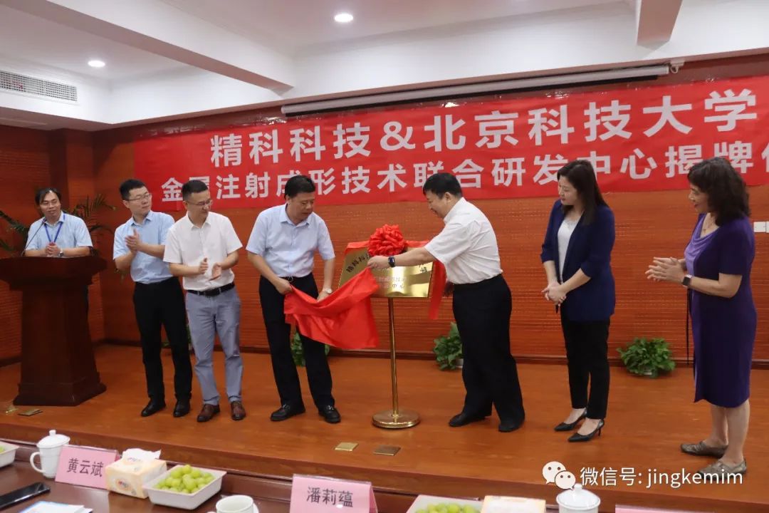 9月28日上午9:30,精科科技公司、北京科技大學(xué)金屬注射成形技術(shù)聯(lián)合研發(fā)中心揭牌儀式在嘉興精科科技有限公司舉行。這是國(guó)內(nèi)一流高校研發(fā)機(jī)構(gòu)對(duì)精科科技公司研發(fā)水平的充分認(rèn)可。北京科技大學(xué)曲選輝教授、精科科技總經(jīng)理黃云斌共同為聯(lián)合研發(fā)中心揭牌,嘉善開發(fā)區(qū)管委會(huì)副主任潘莉蘊(yùn)、北京科技大學(xué)科技處綜合辦公室郭紹瓊教授、北京科技大學(xué)陳剛副教授,精科技公司近50人參加了揭牌儀式。